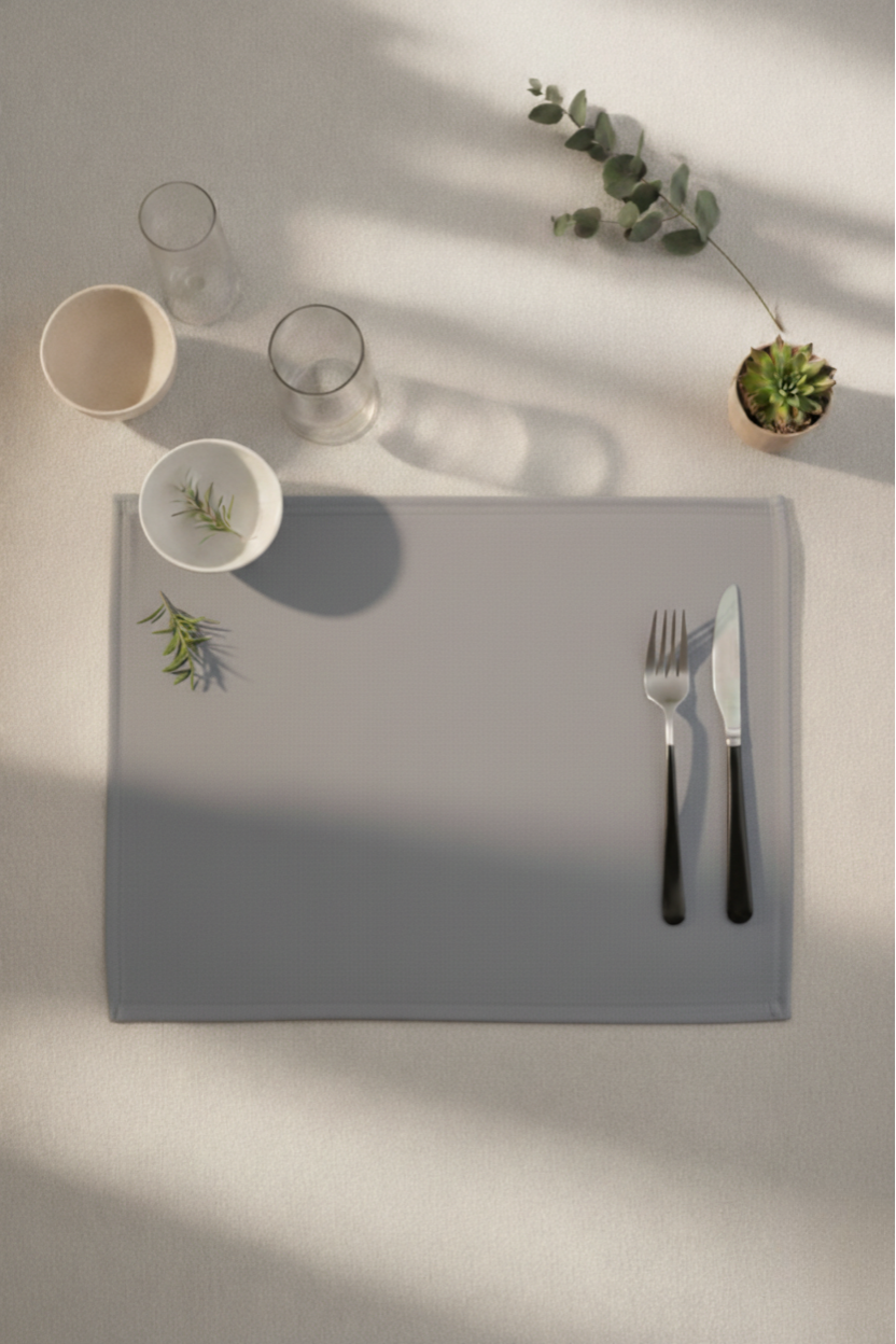 Gri supla tok dokusu ve dikdörtgen görünümü ile sofralara şık bir görünüm ve güçlü bir tasarım katar.